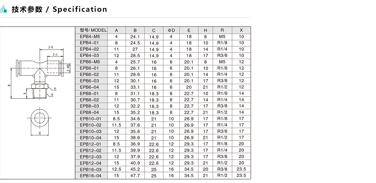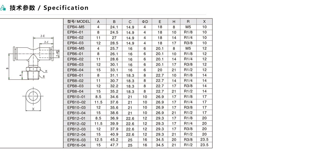 EPB/APB/ZPB T型螺紋三通